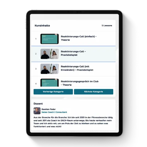 Von der Einwandbehandlung über Retention-Gespräche bis hin zu Marketing- und Betreuungskonzepten – alles praxisfertig und direkt einsetzbar.